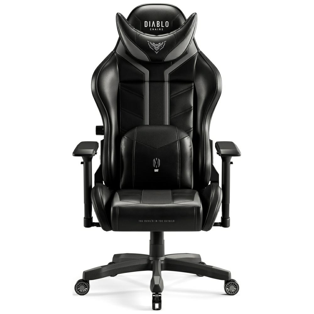 Scaun de gaming Diablo Chairs X-Ray 2.0, King Size, Recliner, Suport Lombar / Cervical, Ergonomic, Ajustabil, Negru / Gri