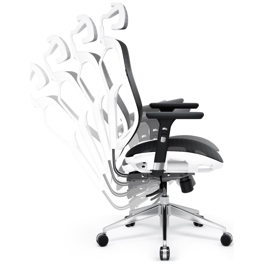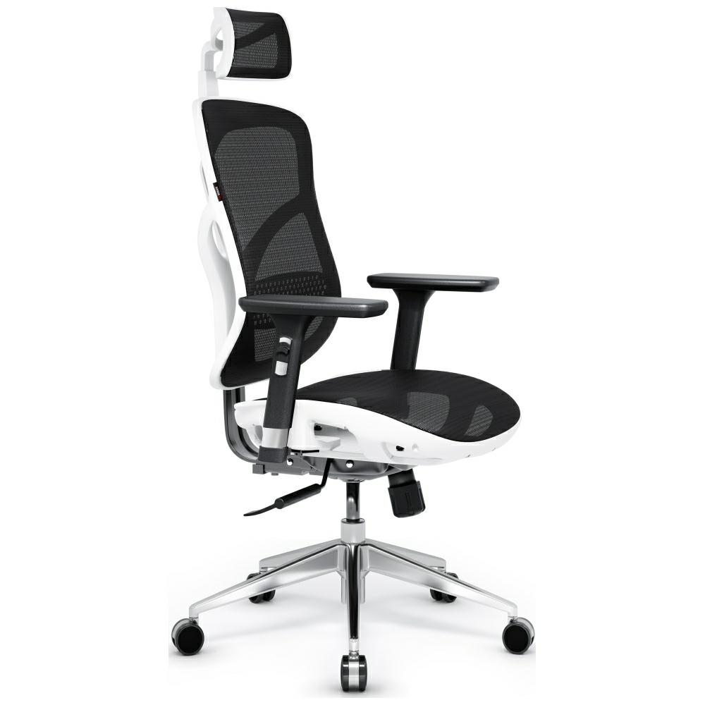 Scaun ergonomic Diablo Chairs V-Basic, Recliner, Suport Lombar / Cervical, Ajustabil, Alb / Negru