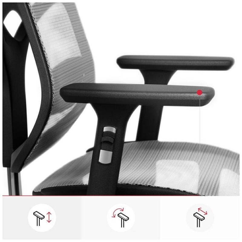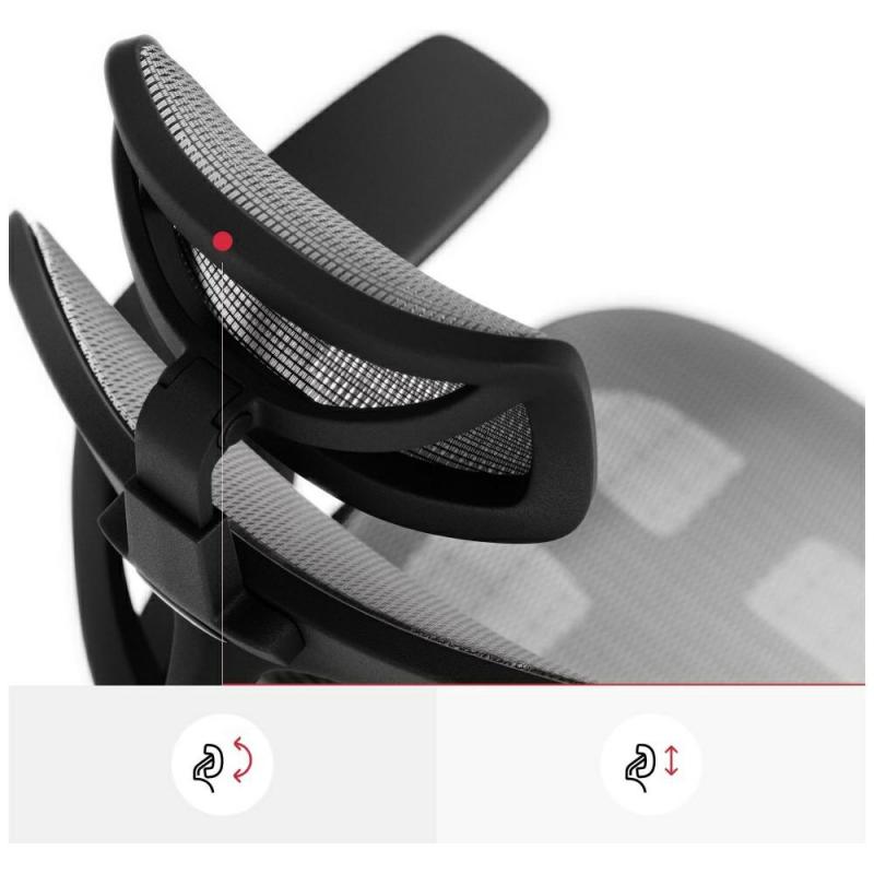 Spătarul scaunului are o formă ergonomică ce ajută la menținerea alinierii naturale a coloanei vertebrale și reduce tensiunea din spate în timpul șederii prelungite. Șezutul conturat corespunzător este moale, dar stabil, asigurând confort chiar și în timpul multor ore de lucru la computer. Ajustarea înălțimii permite scaunului să fie adaptat cu precizie la înălțimea utilizatorului și la nivelul biroului, ceea ce este crucial pentru ergonomie și confortul general.
