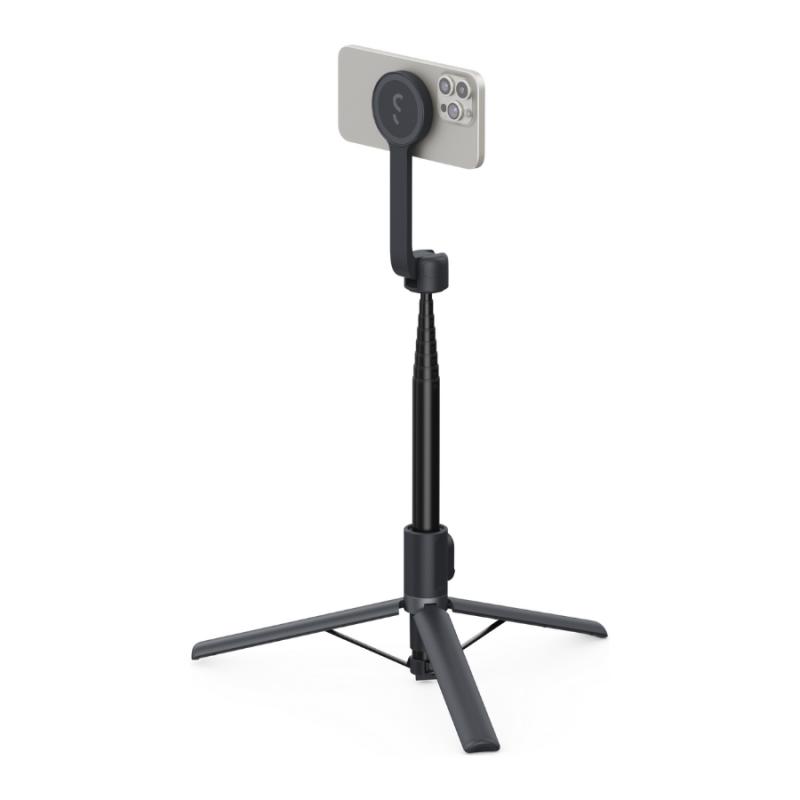 SnapStand Max dispune de un sistem magnetic pentru atașarea rapidă a smartphone-ului. Spune adio clemelor incomode și aliniamentelor enervante ale dispozitivului. În plus, include un telecomandă Bluetooth magnetică cu declanșator tactil, care îți permite să controlezi camera confortabil de la o distanță de până la 10 metri.