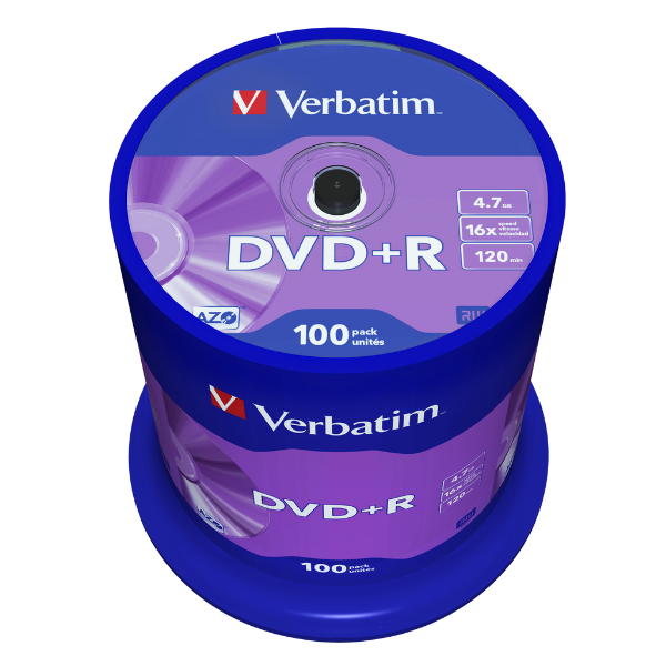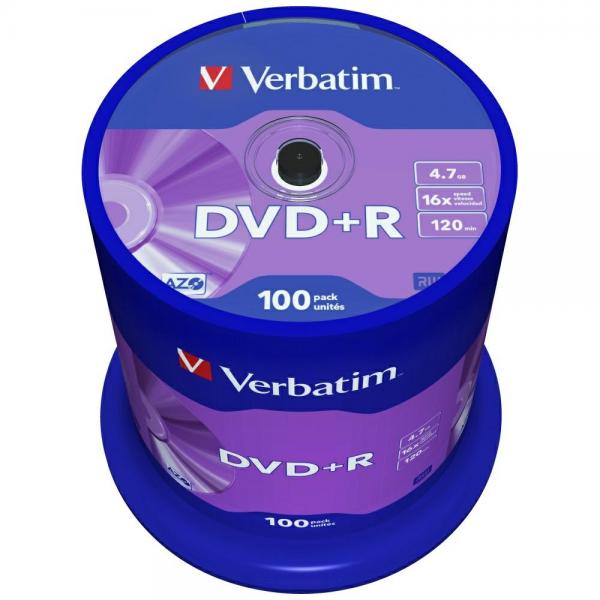 Set 100 bucati Verbatim DVD+R, 4.7GB, Viteza 16x, Silver Cod produs: VER-172502