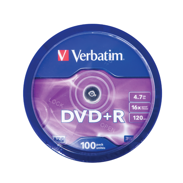 Set 100 bucati Verbatim DVD+R, 4.7GB, Viteza 16x, Silver