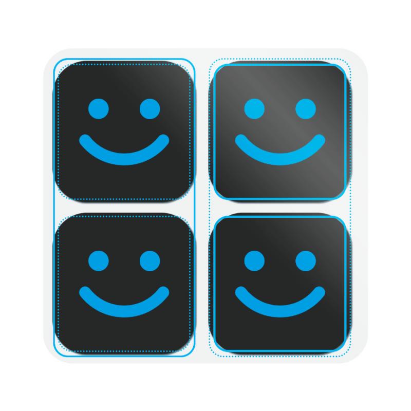 Dimensiunea S este ideală pentru programele Cure, Relax și Tone și pentru toate zonele corpului recomandate de aplicația Bluetens Get Better pentru a obține efectul maxim.