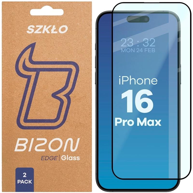 Set 2 folii sticla securizata Bizon Glass Edge Duo compatibile cu iPhone 16 Pro Max, Negru