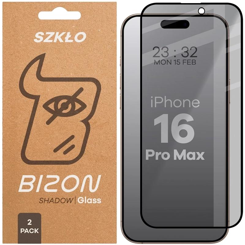 Set 2 folii sticla securizata Bizon Glass Edge Shadow Privacy compatibile cu iPhone 16 Pro Max, Negru