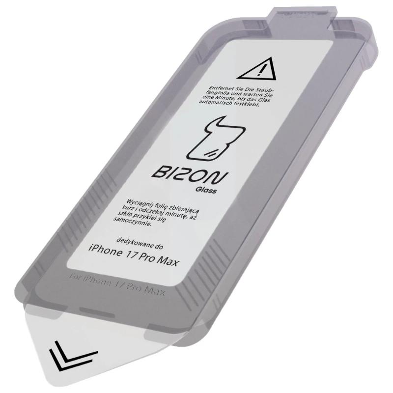 Set 2 folii sticla securizata Bizon Glass, Kit montare inclus, compatibile cu iPhone 17 Pro Max, Negru