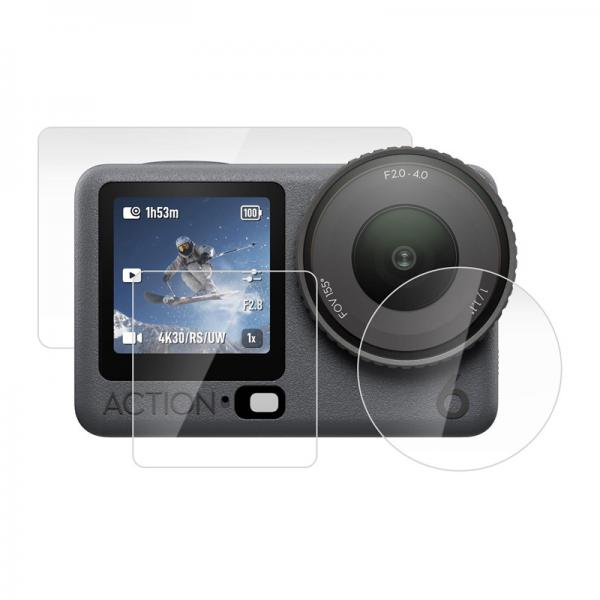 Set 3 folii sticla securizata Puluz PU1067T compatibile cu DJI Osmo Action 6, Transparent