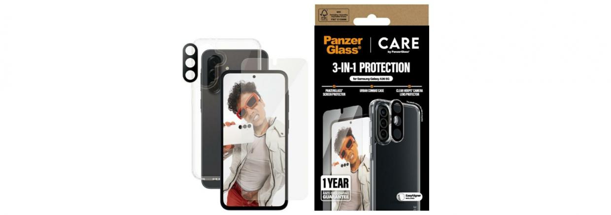 Set de protectie CARE by PanzerGlass Flagship 3in1, Carcasa Clear si Folie protectie display si camera foto, compatibil cu Samsung Galaxy A36 5G, Transparent Cod produs: PAN-169249