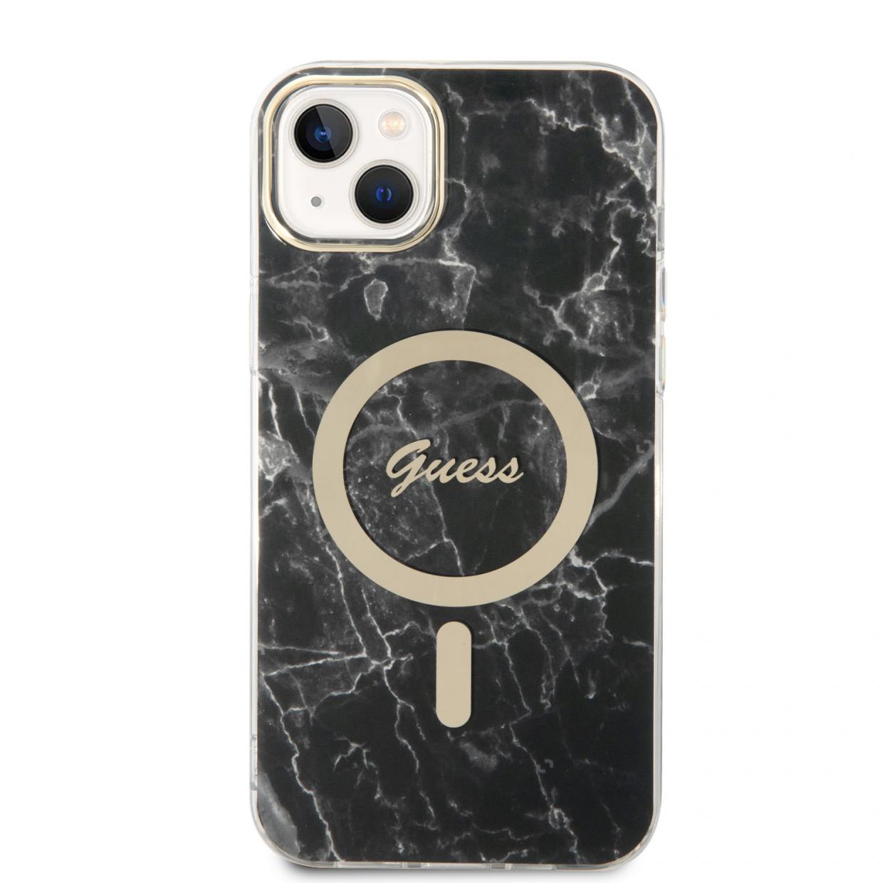 Set Guess Marble, Carcasa cu MagSafe si Incarcator Wireless, compatibil cu iPhone 13 / 14 / 15, Negru Cod produs: GUE-170707