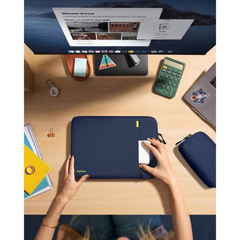 Set husa laptop 13 inch si husa pentru accesorii Tomtoc Sleeve, Navy Blue Cod produs: TOM-181032