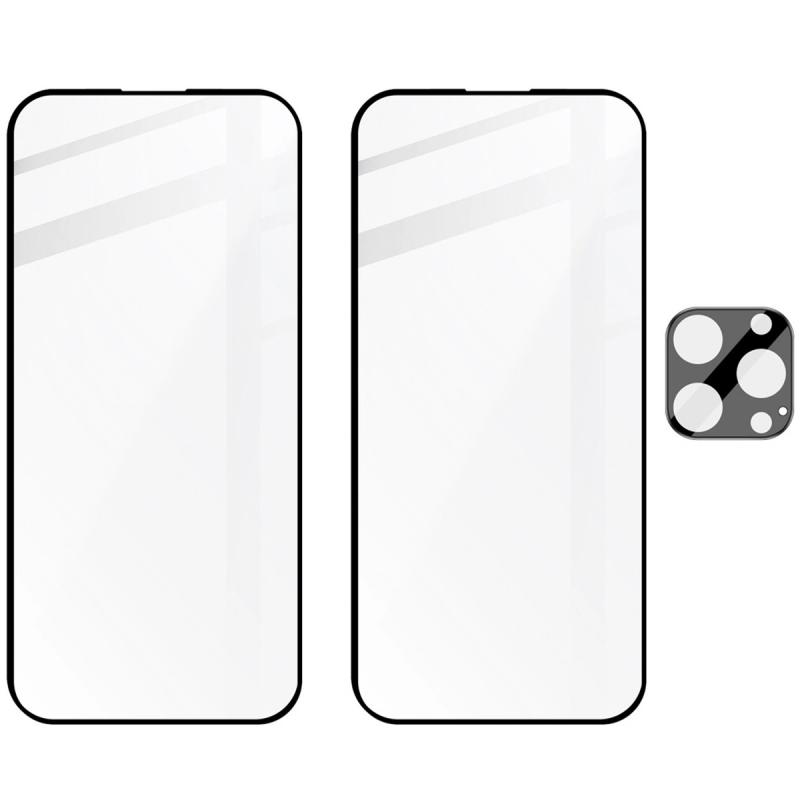 Set protectie 3in1 Bizon Glass Edge Pack, 2 folii sticla ecran + 1 folie sticla camera foto, compatibil cu iPhone 16 Pro Max, Negru Cod produs: BIZ-182065