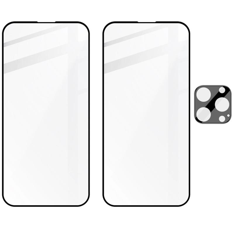Set protectie 3in1 Bizon Glass Edge Pack, 2 folii sticla ecran + 1 folie sticla camera foto, compatibil cu iPhone 16 Pro, Transparent