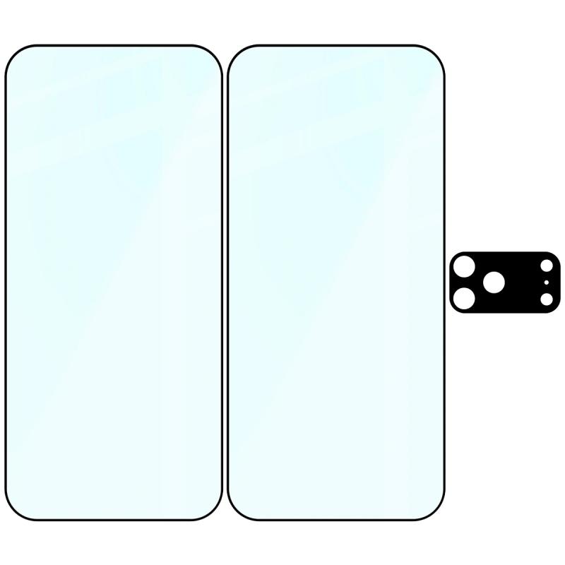 Bizon Glass Edge Pack, pe lângă 2 bucăți de sticlă securizată pentru ecran și 1 bucată de protecție pentru aparat, conține: