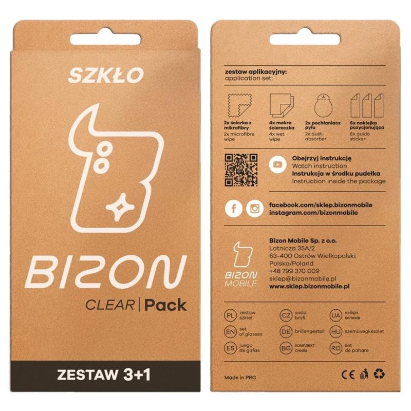 Bizon Glass Clear Pack, pe lângă 3 bucăți de sticlă întărită pentru ecran și 1 bucată de folie pentru cameră, conține: