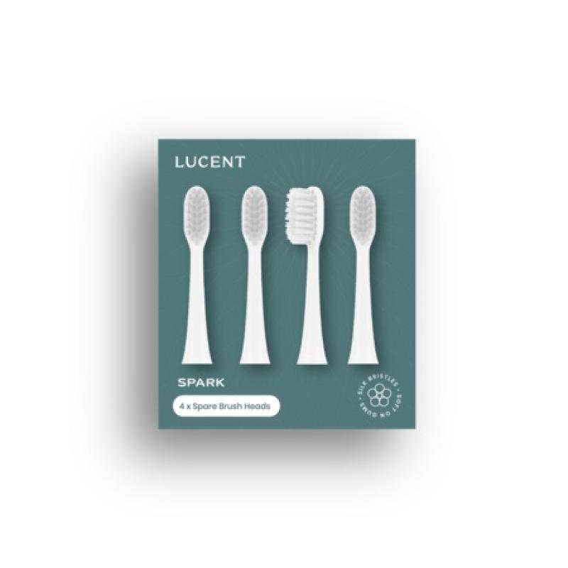 Set de 4 capete de rezervă pentru periuța de dinți sonică Be Lucent Spark Compact Sonic Toothbrush. Aceste capete sunt concepute pentru a menține o curățare eficientă și delicată, protejând în același timp gingiile și ajutând la îndepărtarea plăcii bacteriene și a petelor de suprafață.