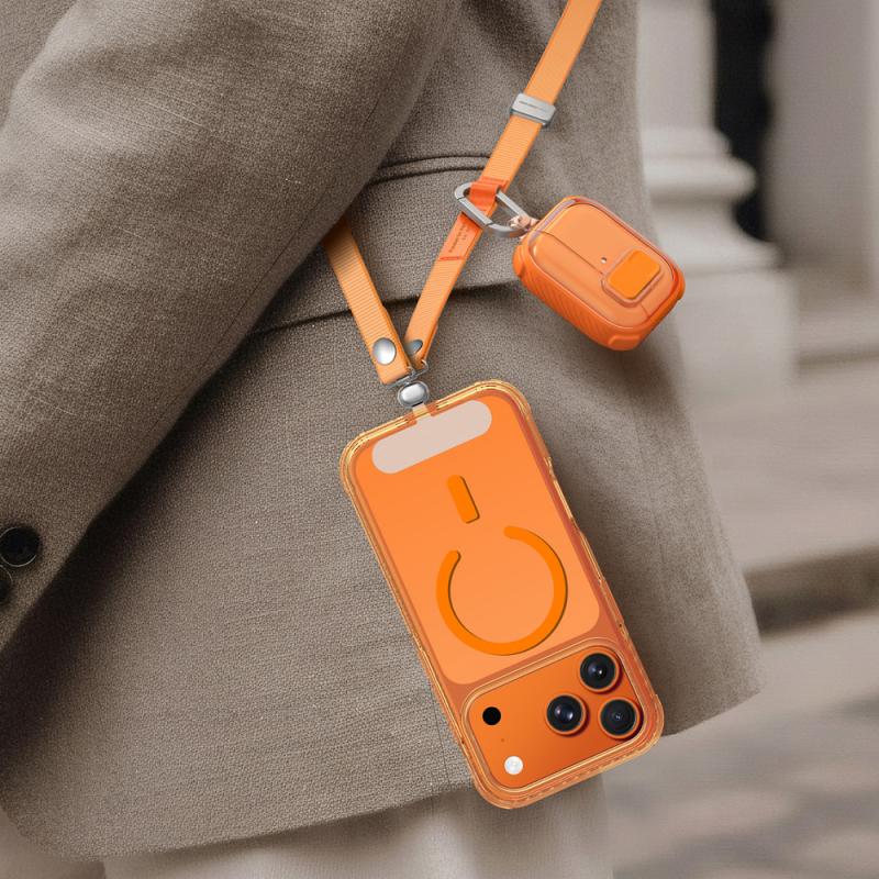 Cureaua este ideală ca accesoriu de zi cu zi, menținând telefonul fixat în siguranță și oferind acces rapid la dispozitiv sau la accesorii compatibile. De asemenea, permite atașarea unei carcase AirPods cu ajutorul unui carabinier, pentru a transporta ușor atât telefonul, cât și căștile.