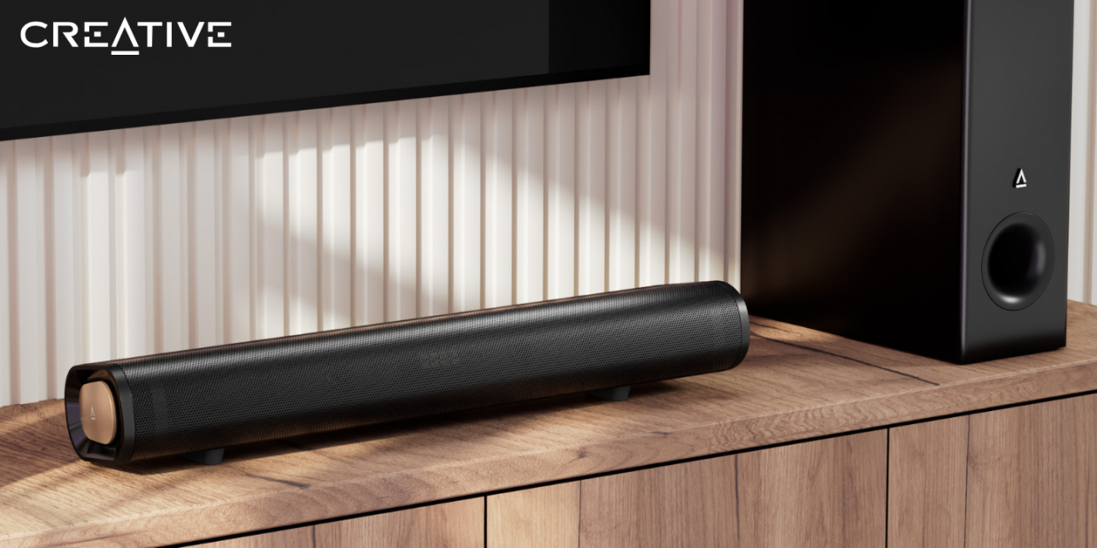 Stage Pro Soundbar 2.1 cu Dolby Audio pentru o experiență cinematică Proiectat pentru spații mici - Creative Stage Pro oferă sunet cinematic pentru computerul și televizorul tău, imersându-te în inima fiecărei scene.