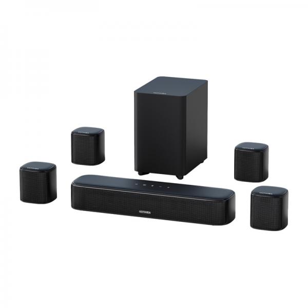 Datorită tehnologiei 7.1 Channel Virtual Surround Sound, sunetul capătă o profunzime și un spațiu clar. Patru difuzoare dedicate – față și spate – sunt responsabile pentru efectele audio realiste, creând impresia că sunetul provine din direcții diferite. Puterea maximă de 330 W asigură o dinamică adecvată pentru vizionarea de filme, ascultarea de muzică și urmărirea evenimentelor sportive. Tehnologiile BassMX și SurroundX Tehnologiile Ultimea BassMX și Ultimea SurroundX sunt responsabile pentru reproducerea clară a basului și a sunetului surround precis. Subwooferul cu fir de patru inci oferă tonuri joase și profunde, care accentuează acțiunea și adaugă realism fiecărei scene. Întregul sistem asigură o reproducere a sunetului de înaltă calitate, menținând claritatea dialogului și detaliile efectelor.