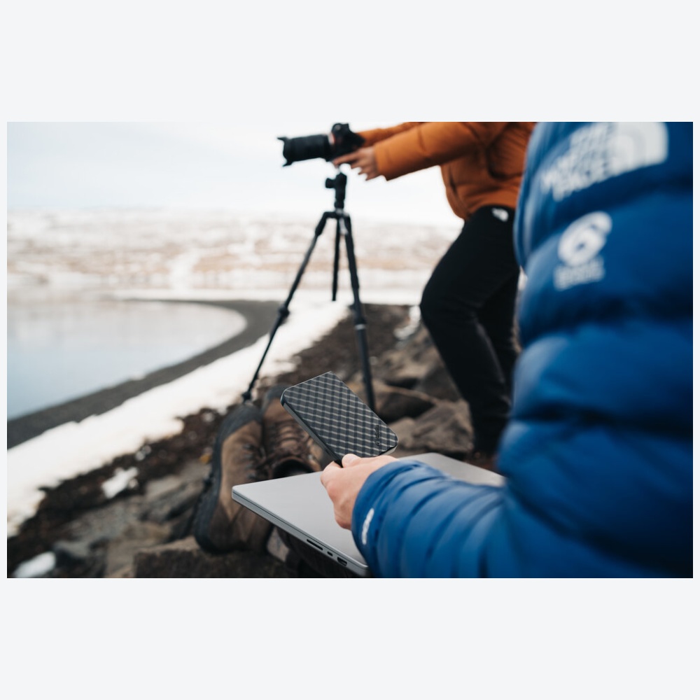 Designul subțire și compact permite unității să se încadreze ușor într-un buzunar sau rucsac, în timp ce carcasa acoperită cu material textil oferă o calitate solidă a construcției și un utilizare confortabilă. Setul include un cablu USB-C ➝ USB-A și un adaptor, facilitând conectarea la diverse dispozitive - de la laptopuri și tablete la smartphone-uri care suportă stocarea externă.