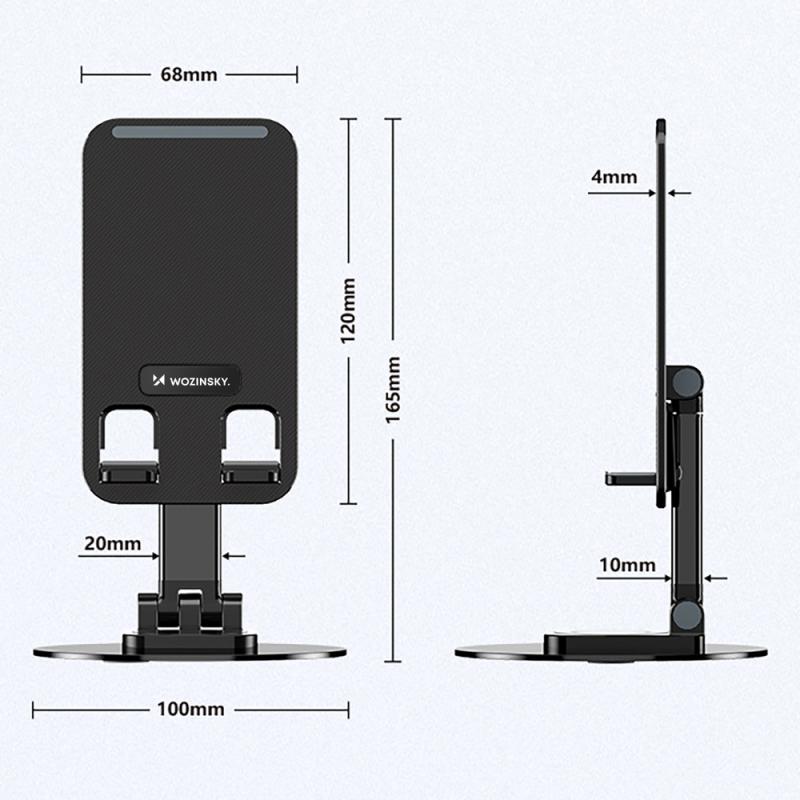 Suportul de birou Wozinsky WPT-K393 este un stand stabil și practic, conceput pentru utilizarea confortabilă a telefonului sau tabletei în timpul lucrului, studiului sau vizionării de conținut. Designul reglabil permite ajustarea unghiului de vizualizare în funcție de nevoi, iar baza solidă din metal oferă stabilitate pe suprafața biroului. Construcția pliabilă îl face ușor de transportat și depozitat, iar elementele anti-alunecare protejează dispozitivul.