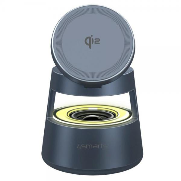 Statie de incarcare 3 in 1 4smarts Aura Sound Qi2, Compatibil MagSafe, Wireless Charging, 30W, Bluetooth 5.1, USB-C, Gri