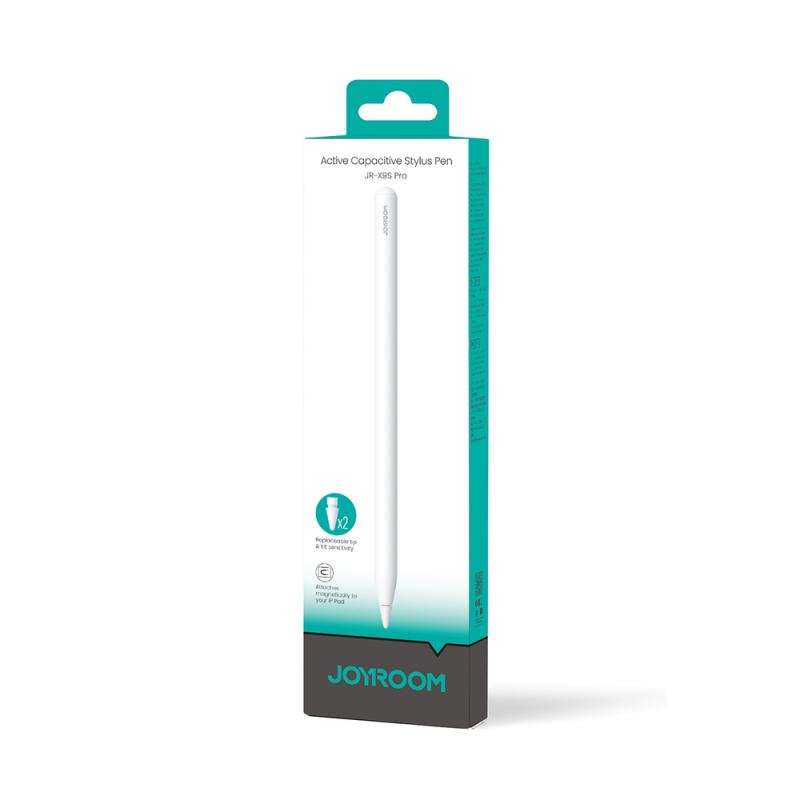 Stylus pen activ Joyroom JR-X9S Pro compatibil cu tablete iPad, Prindere magnetica, 2 varfuri rezerva, 130mAh, Autonomie 9h, USB-C, Alb