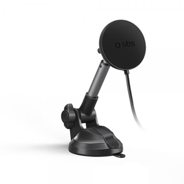Suport auto SBS TESUPPMAG15WLONGARM, Dashboard / Windshield Mount, Rotire 360 grade, Compatibil cu MagSafe, Incarcare Wireless 15W, Negru