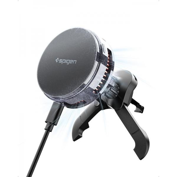 Suport auto Spigen EV25MFAQ Qi2, Air Vent Mount, Compatibil MagSafe, Incarcare wireless 25W, Rotire 360 grade, Cablu USB-C 1m inclus, Negru Cod produs: SPI-167800