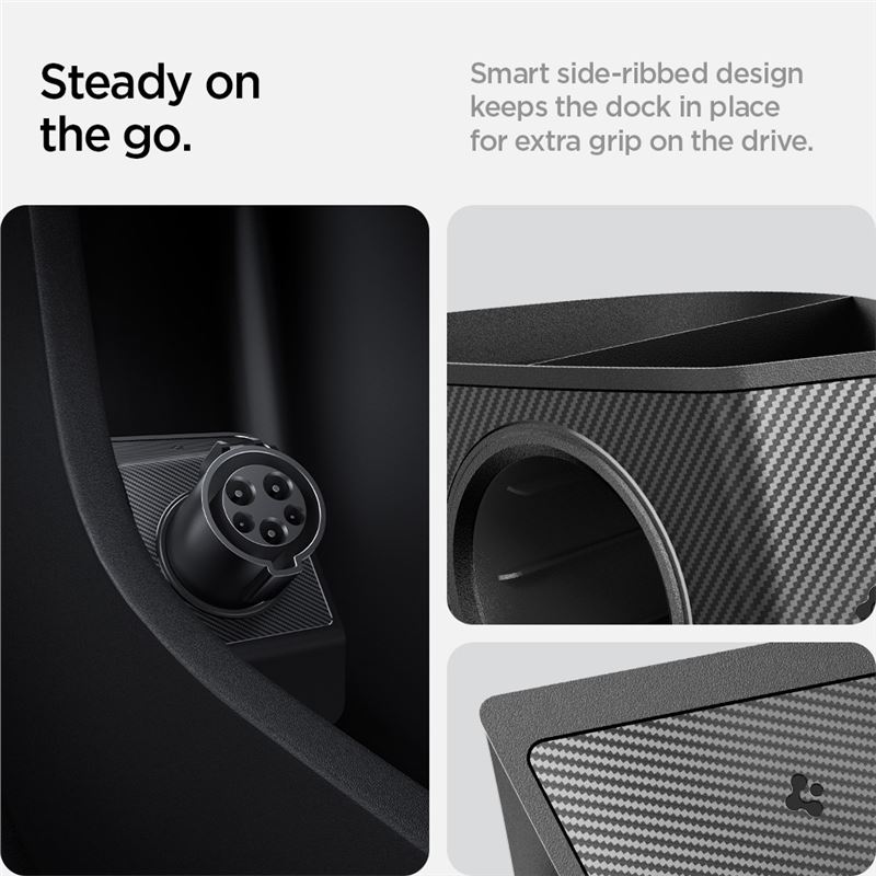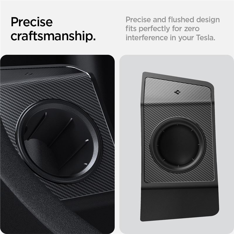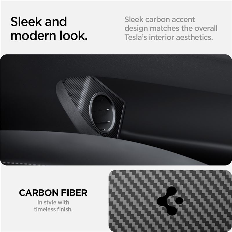 Spigen Tesla Door Dock este o soluție elegantă și practică pentru depozitarea adaptorului de încărcare. Păstrează adaptorul SAE J1772 mereu la îndemână, oferind în același timp un interior mai organizat și mai rafinat. Detaliile cu aspect de fibră de carbon adaugă un plus de stil și asigură fixarea sigură a adaptorului în timpul condusului.
