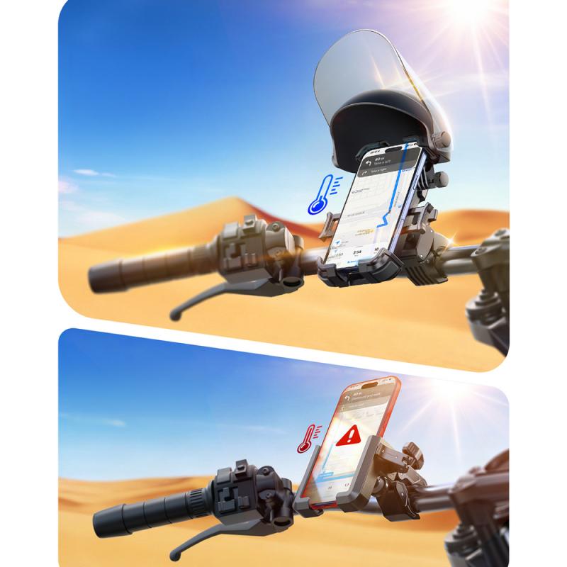 Joyroom JR-ZS526 este un suport practic pentru bicicletă, conceput pentru utilizarea smartphone-ului în timpul mersului. Viziera de soare pliabilă îmbunătățește vizibilitatea ecranului în lumină puternică, facilitând utilizarea navigației și a aplicațiilor. Operarea automată, cu o singură mână, crește confortul utilizării, iar mecanismul de blocare robust menține telefonul fix și sigur. Construcția din PC și ABS este durabilă și rezistentă la uzură, iar sistemul de amortizare reduce vibrațiile. Acest suport funcțional este potrivit atât pentru deplasări zilnice, cât și pentru excursii mai lungi.