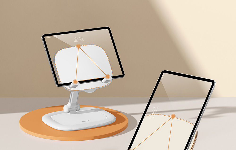In plus, ii puteti regla pozitia in sus si in lateral. Suportul este compatibil cu toate modelele de tablete. Puteti plasa cu succes iPad Pro/Mini si multe altele in el. In plus, va permite sa utilizati dispozitivul pe orizontala sau pe verticala si sa reglati inaltimea de la 30-150 mm si unghiul de inclinare (90°). Tu decizi cum va fi cel mai confortabil pentru tine. Montura este echipata cu o baza larga cu greutate pentru a asigura stabilitate. Mai mult decat atat, elementele din silicon impiedica miscarea suportului pe suprafata unui birou, mese etc. Puteti depozita suportul pentru smartphone in orice moment cand nu il utilizati, iar baza produsului va permite sa depozitati accesorii mici, precum Casti TWS sau un ceas inteligent.