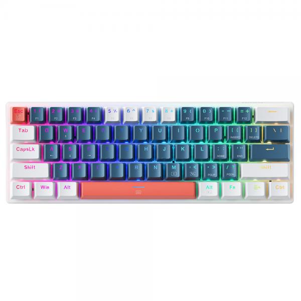 Tastatura gaming mecanica Machenike K500-B61, Cu fir, RGB, Switch-uri Backlight Brown, USB-C, Alb / Albastru Cod produs: MAC-177374