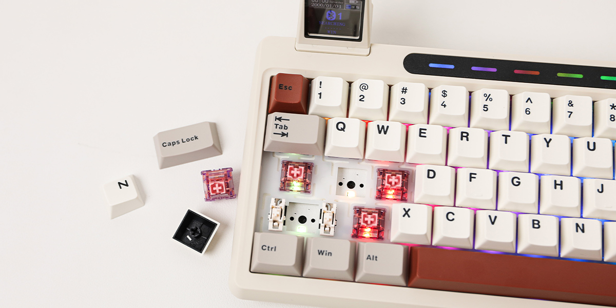 Pentru entuziaștii tastaturilor, RT65 dispune de socluri hot-swap pentru schimbări rapide de switch-uri fără lipire, perfect pentru a experimenta cu diferite tipuri de switch-uri. Această funcție face personalizarea rapidă și fără bătăi de cap.