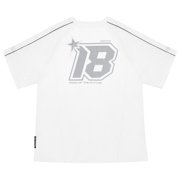 Pe spate, se vede un imprimeu mare cu numărul MMXVIII *18 și fraza "VIZIUNEA VIITORULUI". Acest imprimeu nu doar decorează, ci comunică și filosofia unică a brandului Skinarma și face referire la anul său de înființare.