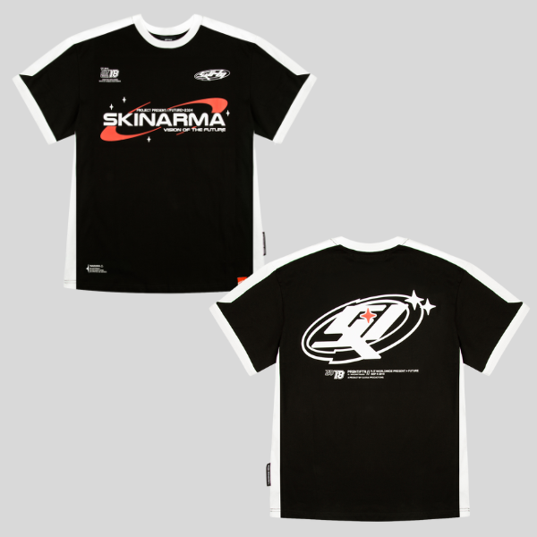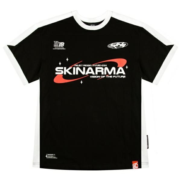 Pe partea din față a tricoului se află logo-ul Skinarma inspirat de spațiu și sloganul "VISION OF THE FUTURE". Această imprimare nu servește doar ca decorație, ci comunică și filozofia unică a brandului Skinarma.