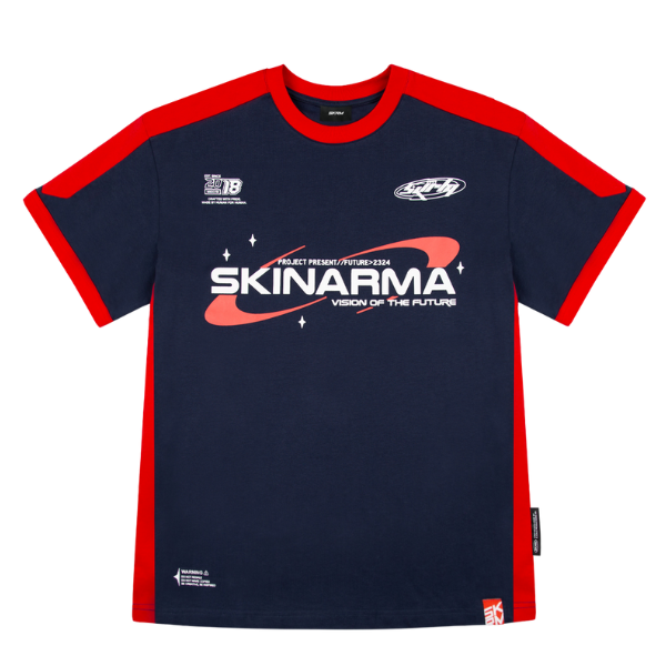 Partea din față a tricoului prezintă logo-ul Skinarma inspirat de spațiu și fraza "VIZIUNEA VIITORULUI". Această imprimare nu doar că decorează, ci comunică și filosofia unică a mărcii Skinarma.