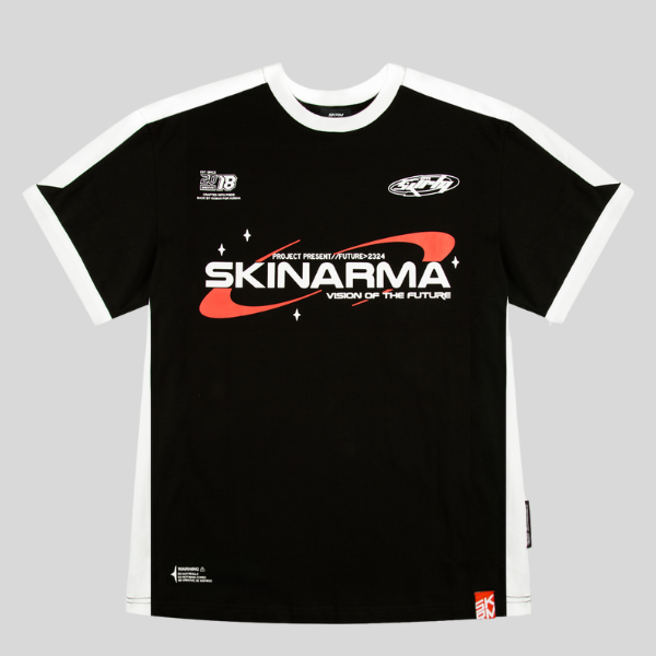 Pe partea din față a tricoului se află logo-ul Skinarma inspirat de spațiu și sloganul „VISION OF THE FUTURE”. Acest imprimeu nu servește doar ca decorațiune, ci comunică și filosofia unică a brandului Skinarma.