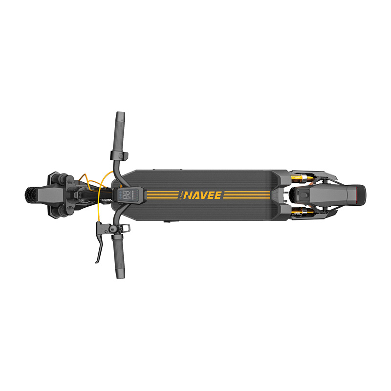 Sistemul de suspensie în patru trepte, compus dintr-o furcă față și un amortizor cilindric spate, reduce eficient vibrațiile cauzate de conducerea pe drumuri denivelate. Acest lucru face ca chiar și conducerea pe pietre sau denivelări urbane să fie mult mai plăcută. Anvelopele mari fără cameră de 10 inci îmbunătățesc și mai mult stabilitatea și tracțiunea. Designul lor crește rezistența la perforare, iar suprafața de contact mai mare cu solul se traduce printr-un control mai bun asupra vehiculului.