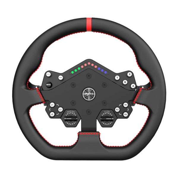 Volanul oferă 11 LED-uri RGB personalizabile care pot acționa ca indicator al turației motorului sau efect de lumină pentru o imersiune mai mare. Un codificator cu buton cu 20 de poziții permite reglarea rapidă a echilibrului frânelor, a sistemului ABS sau a controlului tracțiunii. În plus, există 13 butoane programabile care, împreună cu software-ul PXN SimRacing, pot fi atribuite în mod liber - de la controlul camerei la strategia la boxe.